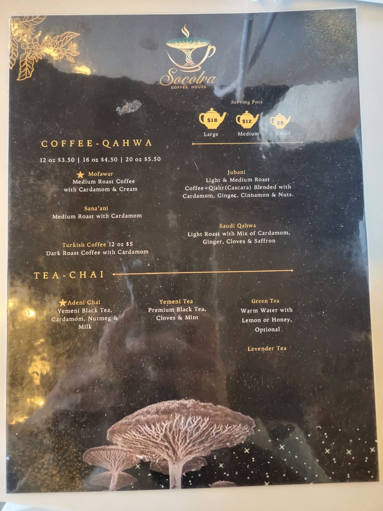 Socotra Coffee House, located in Ann Arbor, MI, is a hidden gem offering a range of delicious desserts, coffee, and teas. Known for their Adeni chai and baked goods, this cafe provides a cozy atmosphere for patrons to relax and enjoy quality beverages. Customers praise the honeycomb latte for its great flavor and the pistachio latte for its perfect balance of sweetness. With a Middle Eastern vibe in both decor and music, Socotra creates a unique experience for guests. The cafe's extended hours, friendly staff, and ample seating make it a popular spot for both work and social gatherings. If you're looking for a place with excellent coffee, tasty desserts, and a welcoming ambiance, Socotra Coffee House is a must-visit destination.